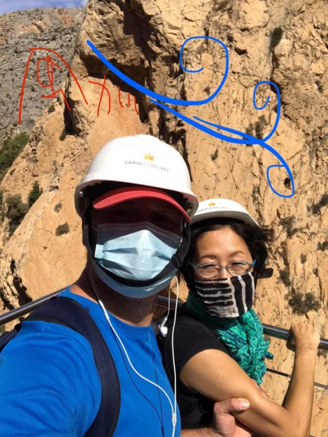 スマホをしまい、山肌にへばりついて進む。私的には、この強風ポイントが、一番怖かった。ハビ吉と一緒で本当によかった。やっと突風から抜け出し