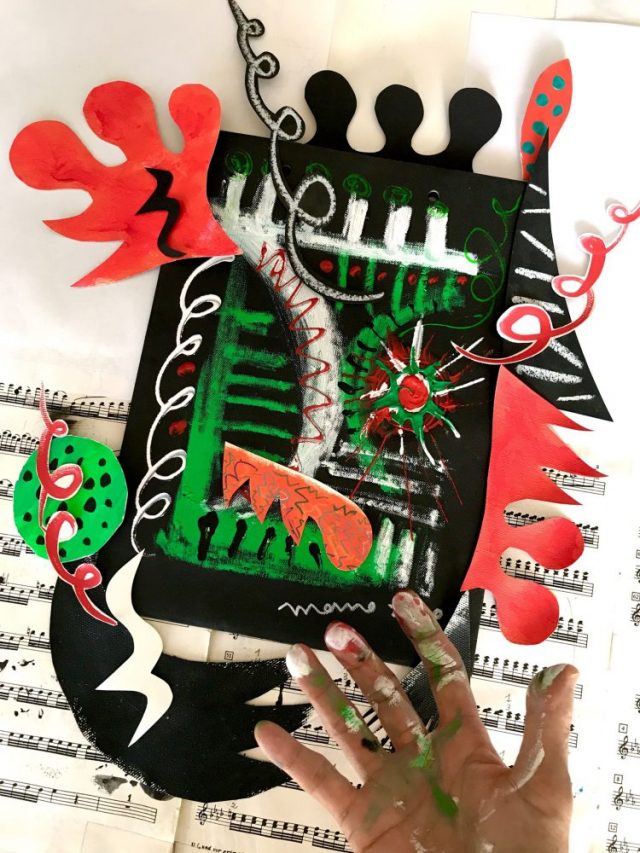 【一日一作プロジェクト】「紙袋」で楽描き&コラージュアート進化中。自然遊歩道「カミニート・デル・レイ」。その休憩スポット「山の清水が流れ込む木陰」で、私は息を飲んだ。