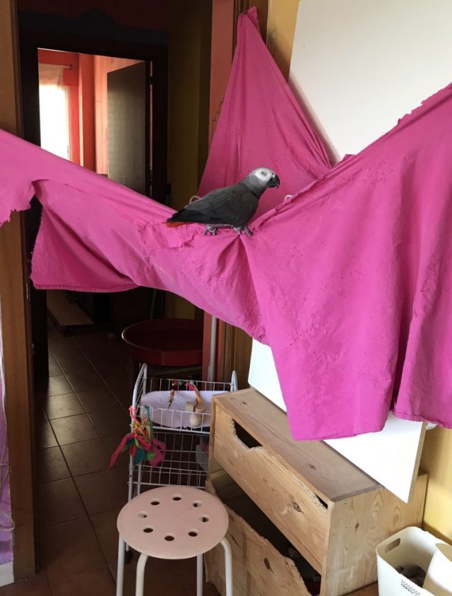 その可能性に、オウムのおかげで気づいた(笑)かなりの感動。たった一枚の布から、ありとあらゆるバリエーションが生まれる。