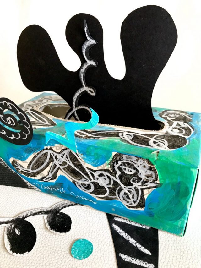 【一日一作プロジェクト】ティッシュの箱で「地中海のアマンテ」を作った。実は2016年にペイントし、そのままずーっとほったらかし(笑)よく見ると