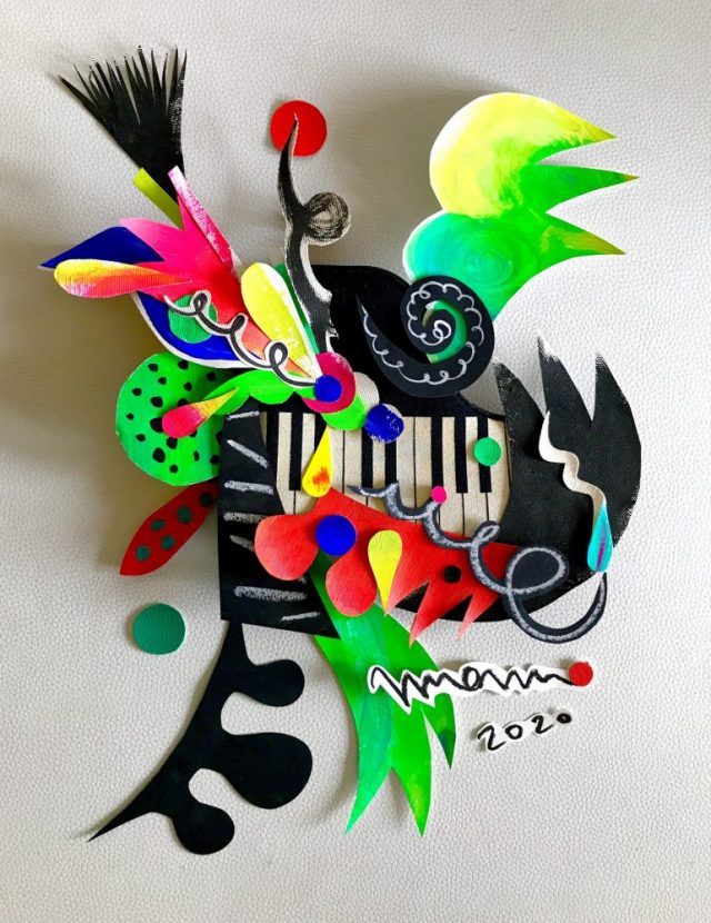 【一日一作プロジェクト】ピアノバッグで「音花宴(おとばなうたげ)」を作った。今日はいきなり熱風テラルが吹き荒れ、気温が34度まで上がった。