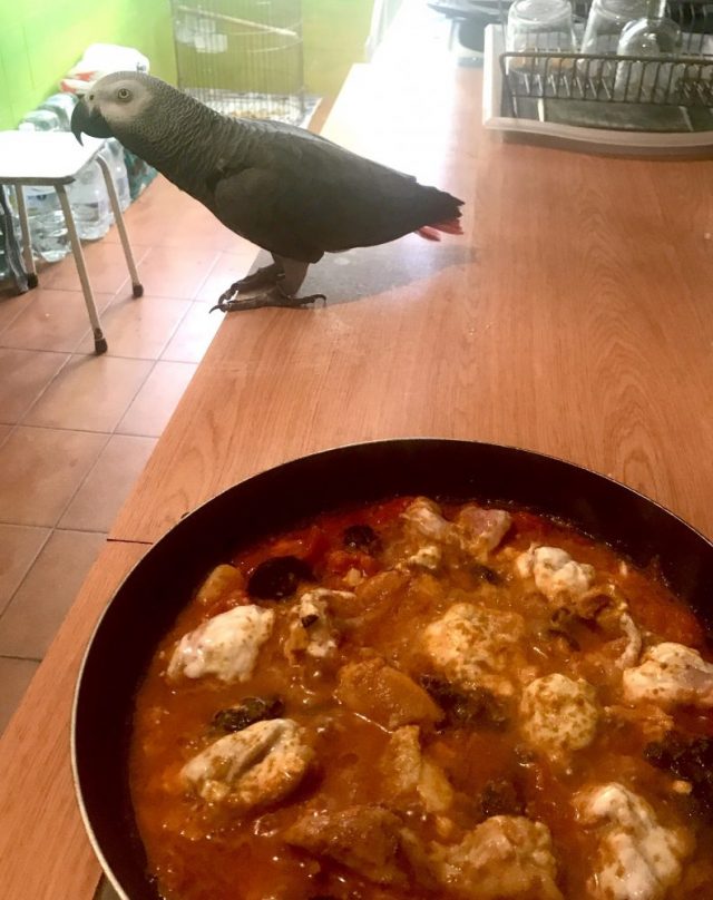 写真は、チキンカレー。スパイス、ヨーグルト、プルーンに、ベルモットとワイン、トマトジュースを投入。はたして。