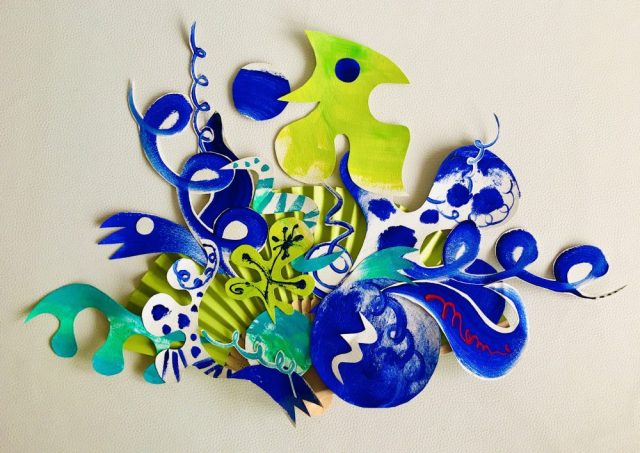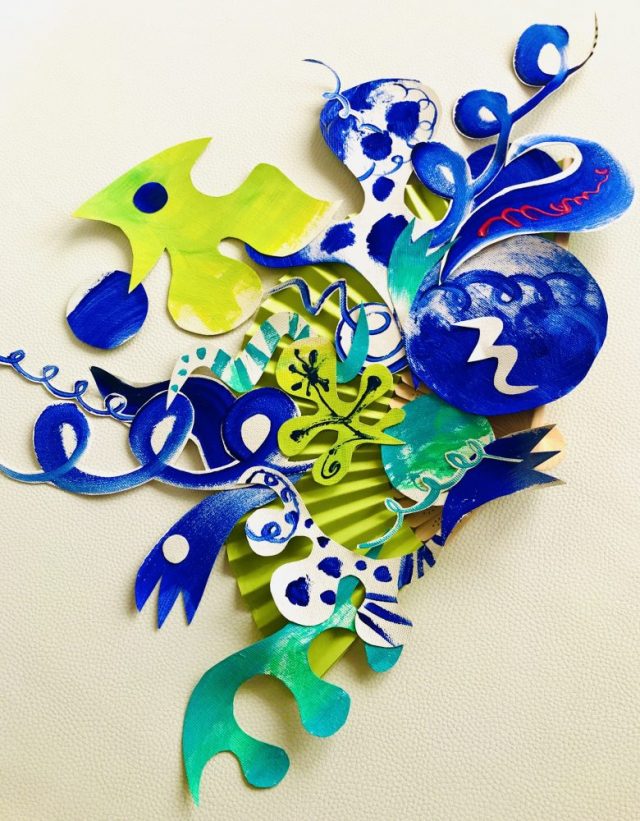 【一日一作プロジェクト】扇子で「水樹舞(みずまい)」を作った。週3回の筋トレは、順調に続いている。鏡の前の「男前ジムコーナー」には