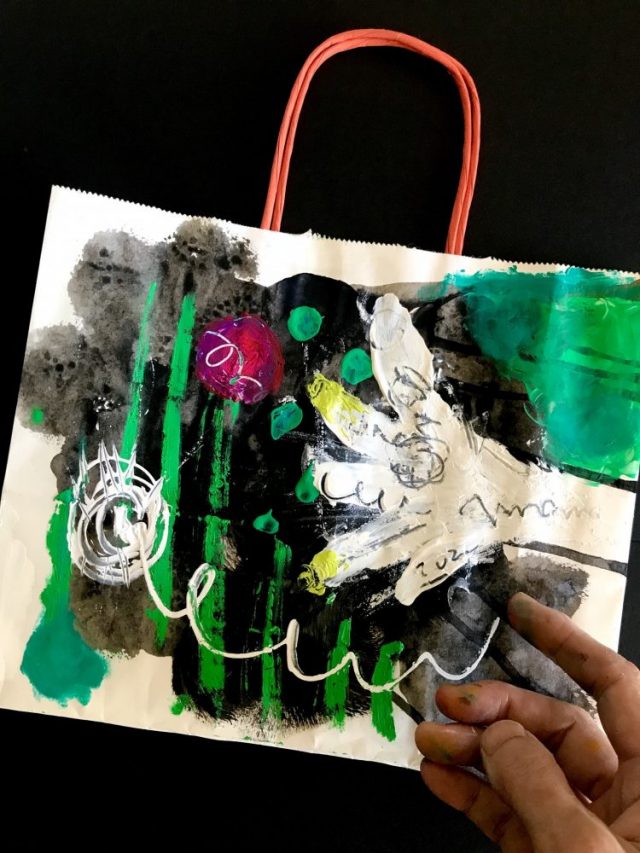 【一日一作プロジェクト】紙袋アート「グリーンジャズ」を作った。今日は夢相談。毎朝、起きる前の「はっきり目覚めていないが夢でもない」半覚醒の時に