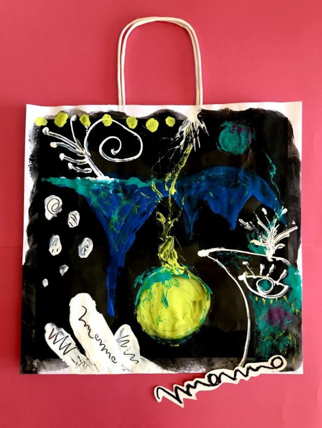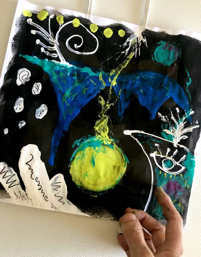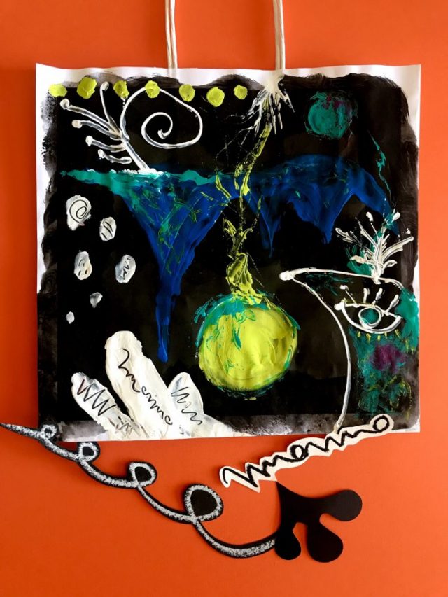 【一日一作プロジェクト】紙袋にペイントして「海の底で燃える月」を作った。今日からスペインは「冬時間」。なので、朝起きてまず