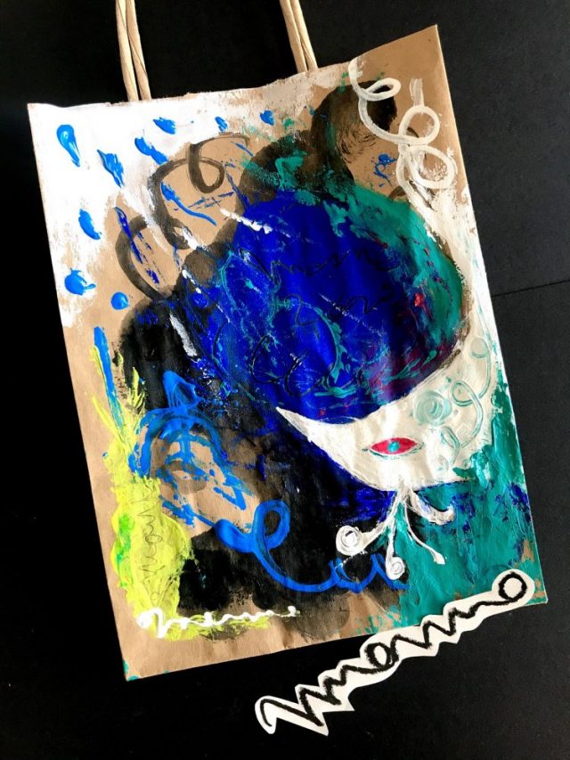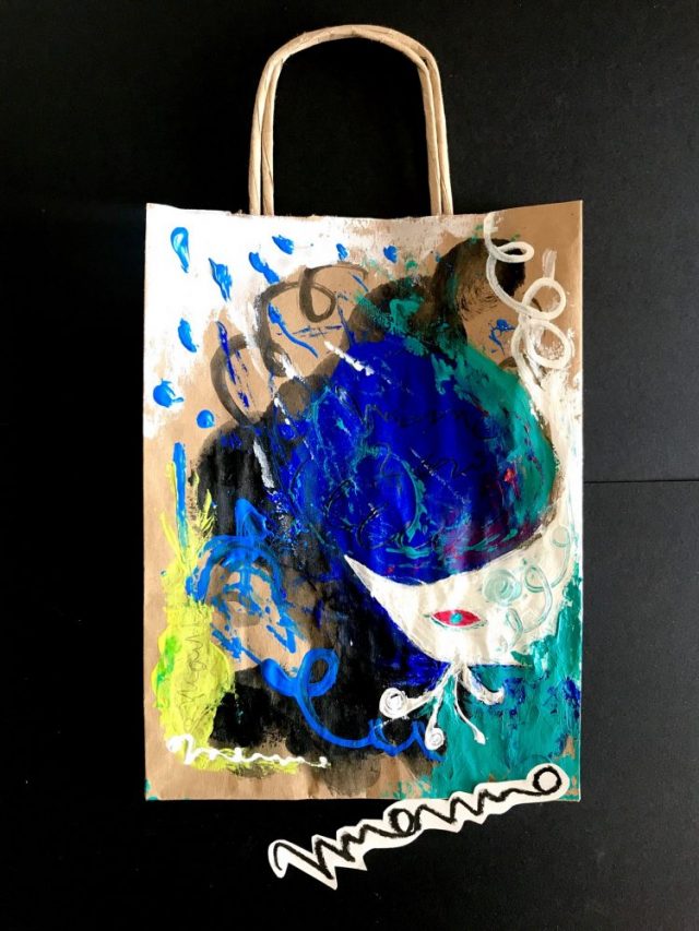 【一日一作プロジェクト】紙袋ペイント「雨海鳥月」を作った。フランスでついに1ヶ月間の都市封鎖(ロックダウン)がスタート。恐れおののいていたら