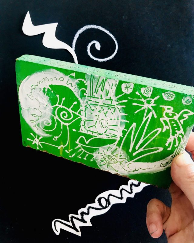 【一日一作プロジェクト】木片ペイント「風歌音」を作った。時々、狂おしいほど「甘くてふわふわしたもの」が食べたくなる。基本的にうちにお菓子は置いてないので
