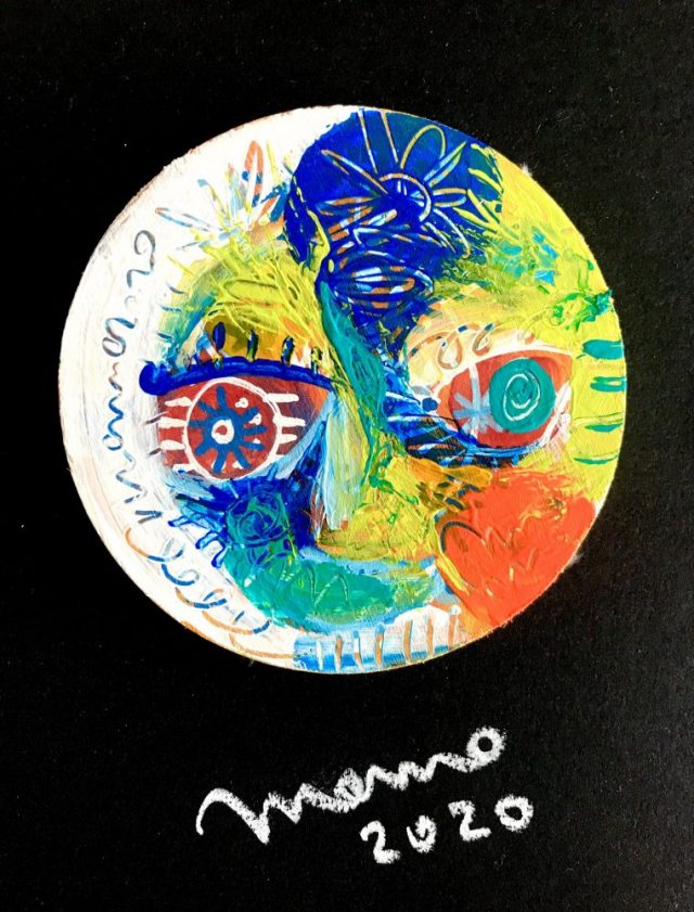 【一日一作プロジェクト】丸板にペイントして「心鏡(こころかがみ)」を作った。ブレイキングニュース。本日マラガに新たなコロナ規制が発令!
