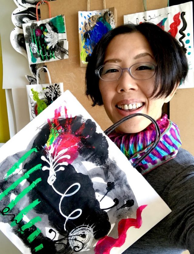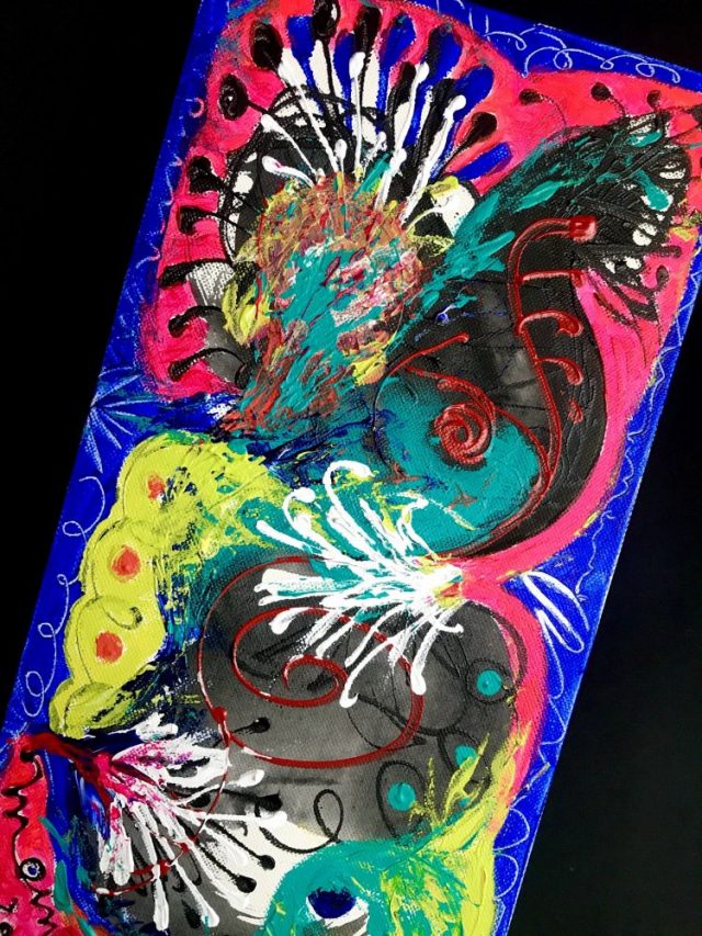 【一日一作プロジェクト】キャンバス地にペイントして「遊花(ゆうばな)しぶき」を作った。今期はひたすら「新しいスタイルに挑戦」なので