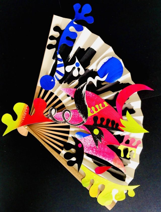 【一日一作プロジェクト】扇子アート「朝咲(あさざき)」を作った。先日、私が買った「生ハムの脚・試食会」に感化され、マンションのお隣さん方が次々に