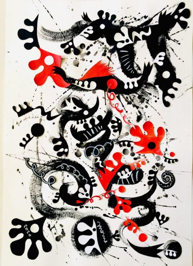 【一日一作プロジェクト】11/16は「Día Internacional del Flamenco(世界フラメンコデー)」。ペイント&コラージュで「パシオンしぶき」を作った。