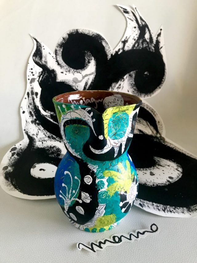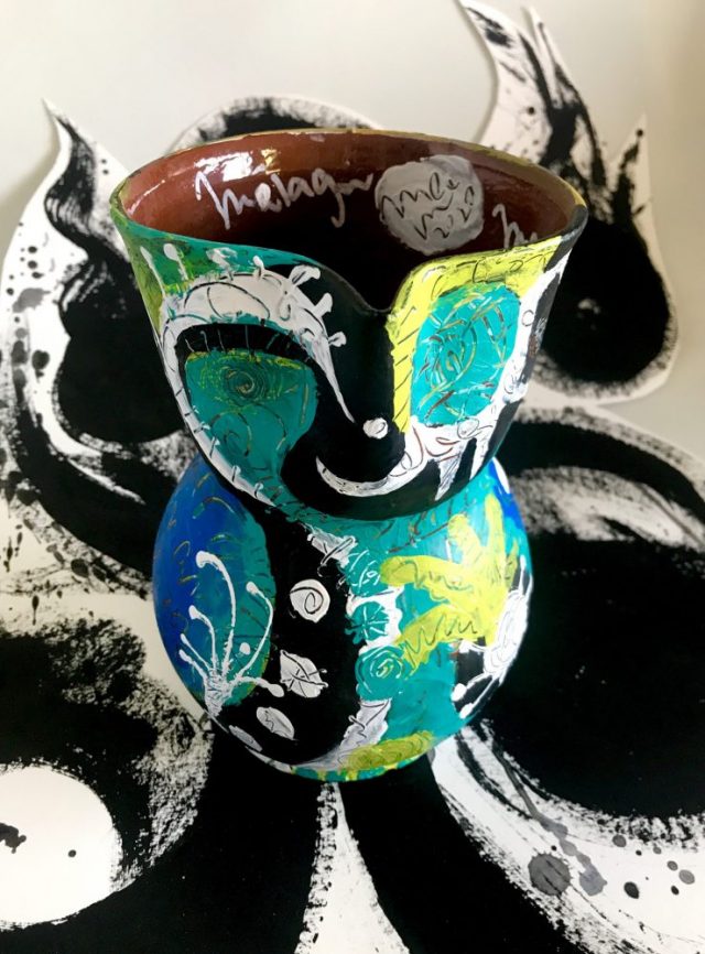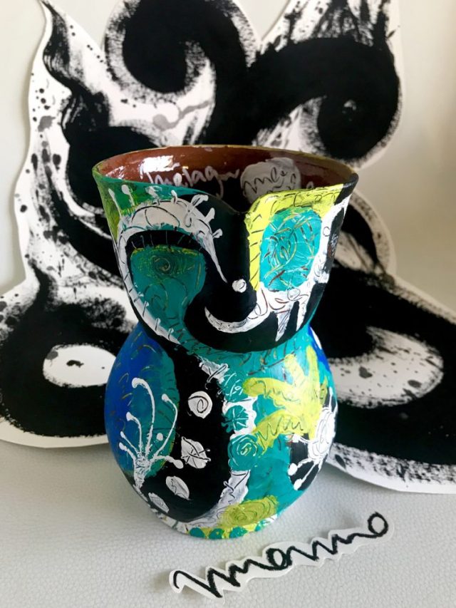 【一日一作プロジェクト】水差しにペイントして「ぐる夢花道」を作った。5年前、ベラが他界し、音楽屋をやめ、生活とアイデンティティが足元から崩れ落ちた私に