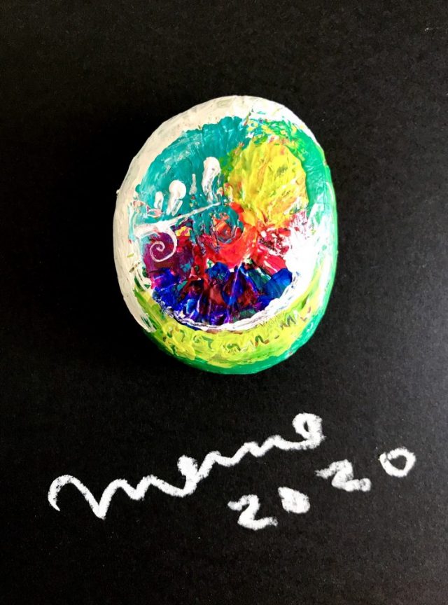 【一日一作プロジェクト】石にペイントして「瞑想玉」を作った。ハビ吉と買い物ついでに郊外へドライブ。なにしろコロナ移動規制が発令され