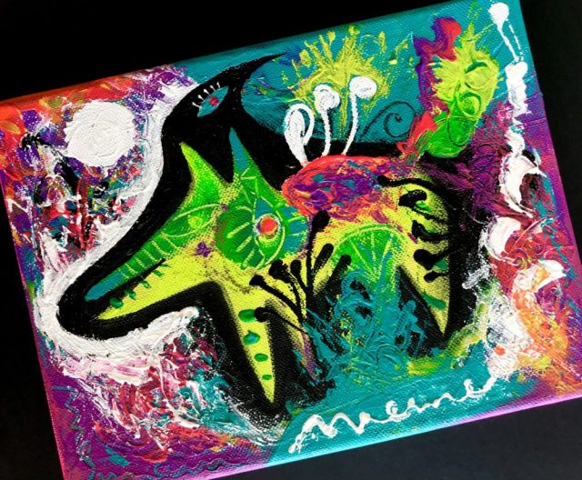 【一日一作プロジェクト】キャンバス地にペイントして「闇に抱かれた希望」を作った。ここのところ、コロナの規制変更や新しいルールの発令が