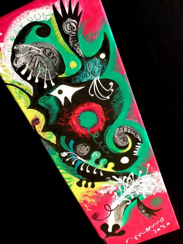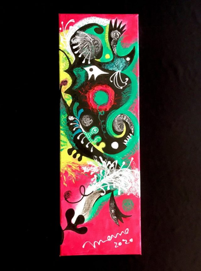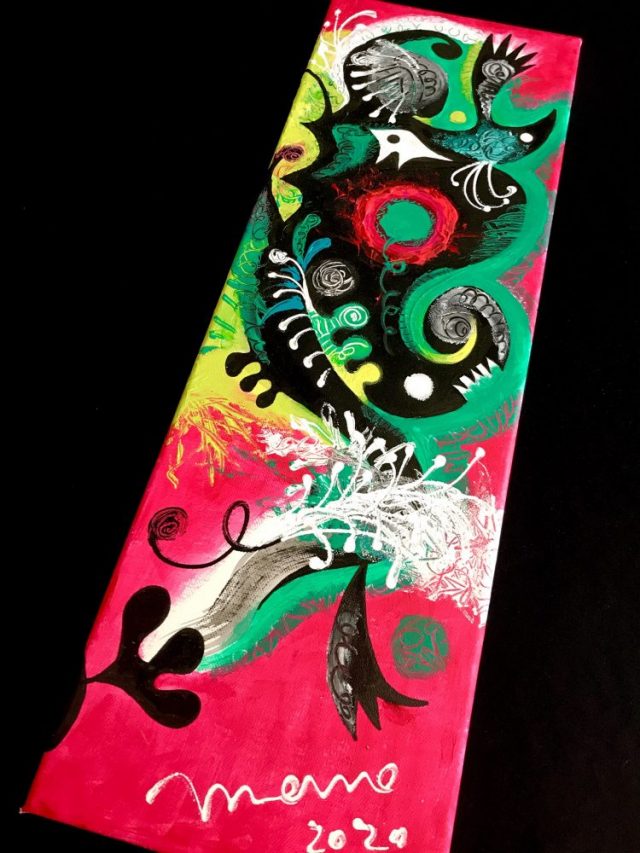 【一日一作プロジェクト】キャンバスにペイントして「結咲(むすびざき)」を作った。組画「遊異結「ゆいむすび)」の3点目。