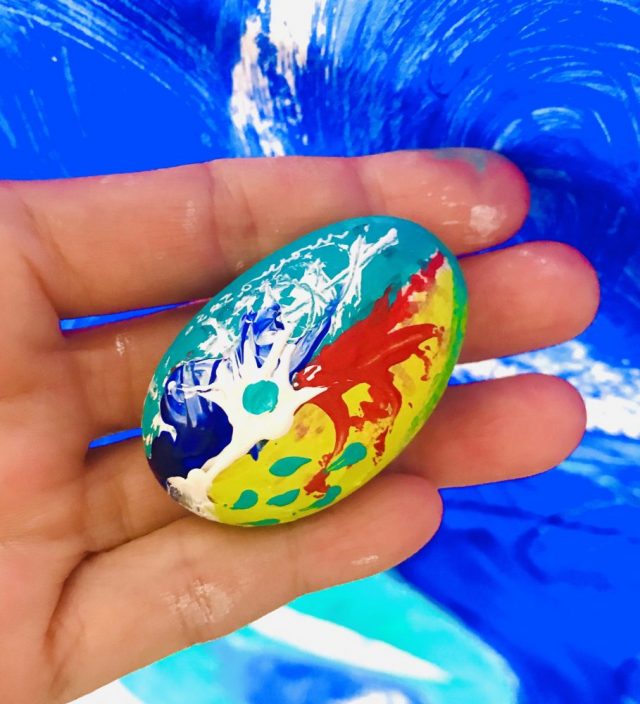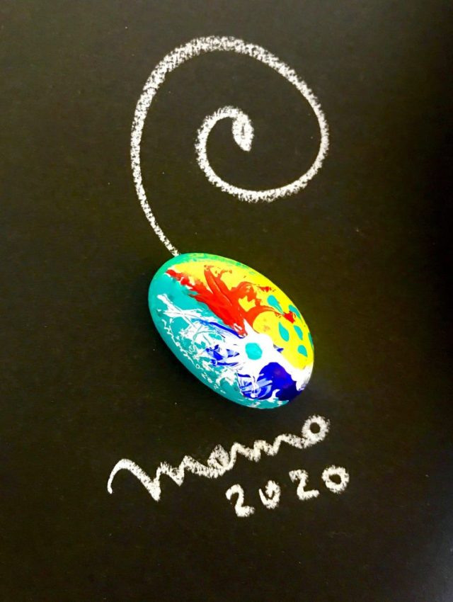 【一日一作プロジェクト】石にペイントして「バランス玉」を作った。アトリエにいるオウムが「どうも静かだなぁ」と思ったら