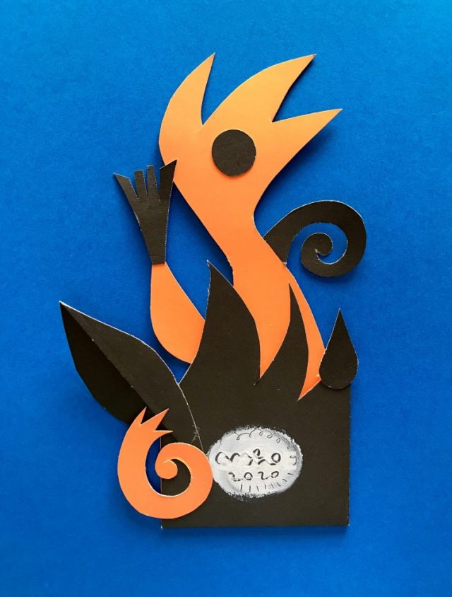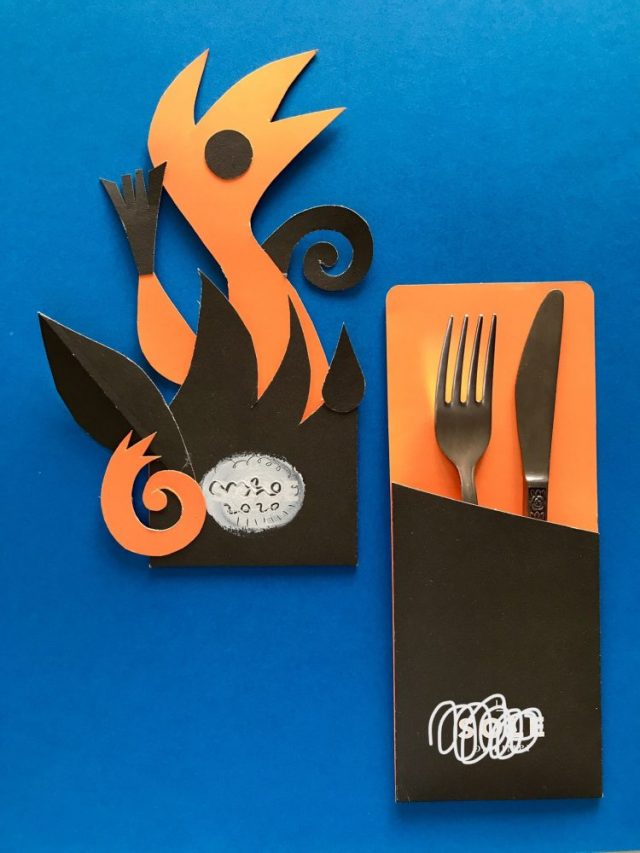 【一日一作プロジェクト】フォーク&ナイフが入っていた厚紙で「踊花(おどりばな)」を作った。うちのお隣さん達は
