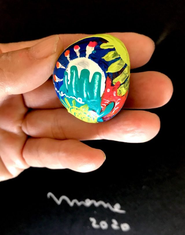 「どうして私は、石にペイントしているんだろう。拾った葉っぱや、空き瓶に」