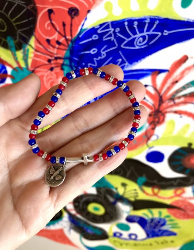 そして。私の手にそっとブレスレットを握らせた。十字架と鳥のパーツのついた赤と青の。今期、私が好んでペイントしている配色。お礼を伝え、すぐに身につけた。