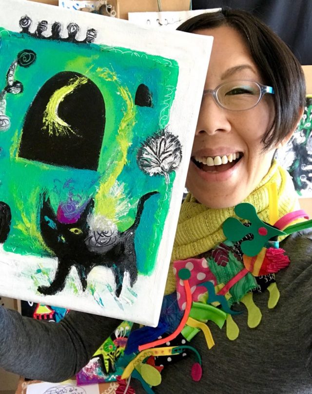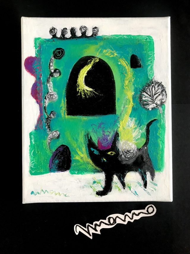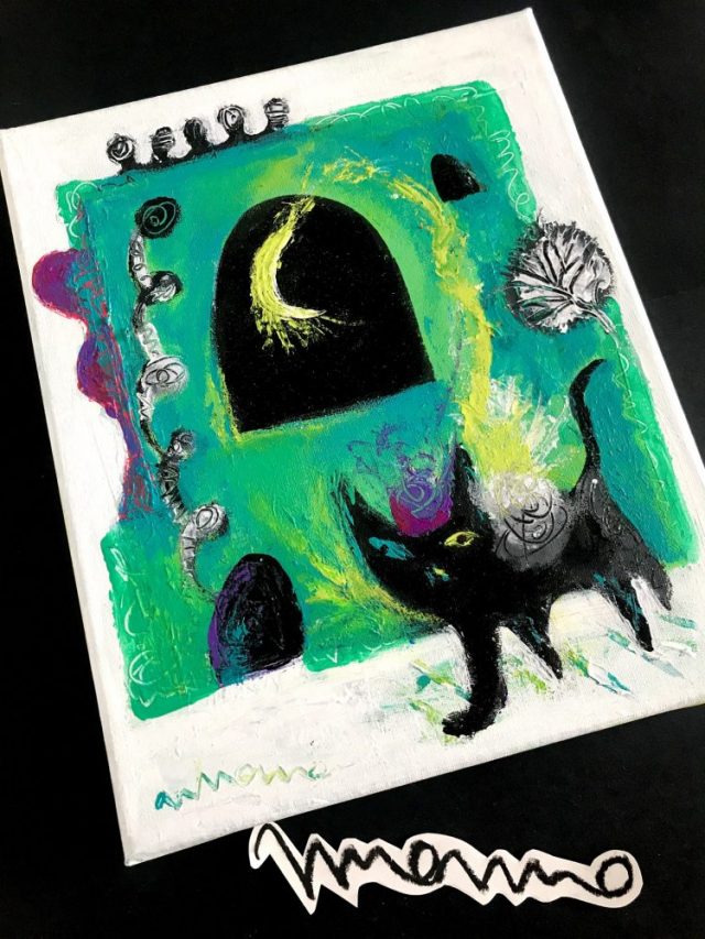 【一日一作プロジェクト】キャンバスにペイントして「月と古城と羽の生えた猫」を作った。黒猫を主人公にして