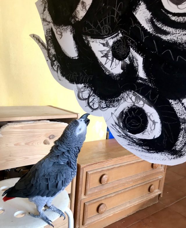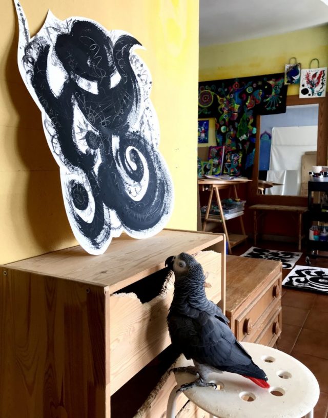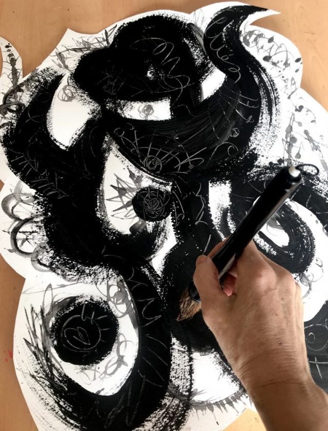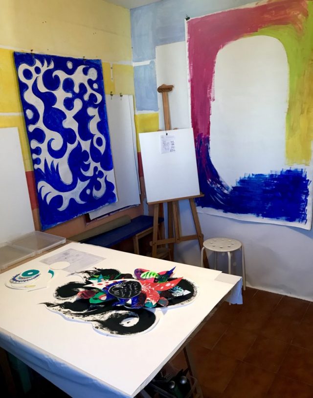 【一日一作プロジェクト】カリグラフィアート組画シリーズ「結」を作った。別室を「作業場に自力リフォーム」中。2つの棚を取り外し、その中の物を大処分。