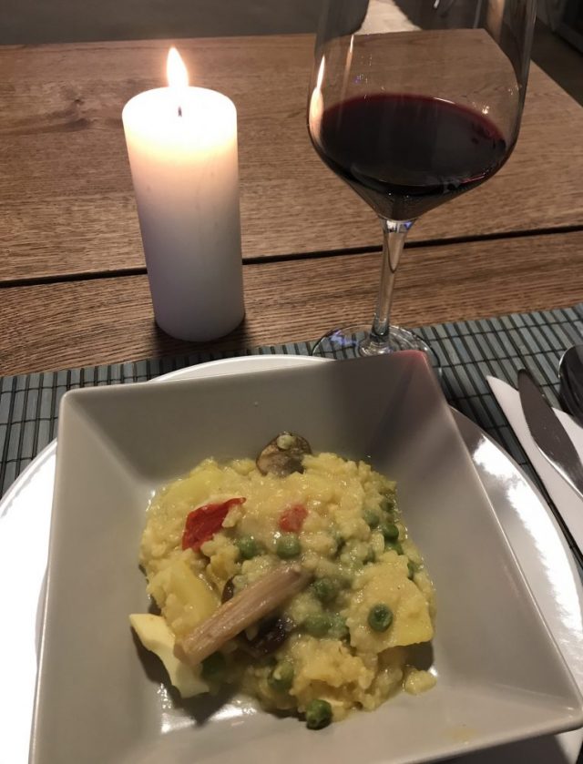 おいしい手料理&美しいテーブルセッティングに、心も会話も弾む〜。ろうそくの灯りがいい感じ。うちは飛び回るオウムがいるので、ろうそくは使わないのだ。