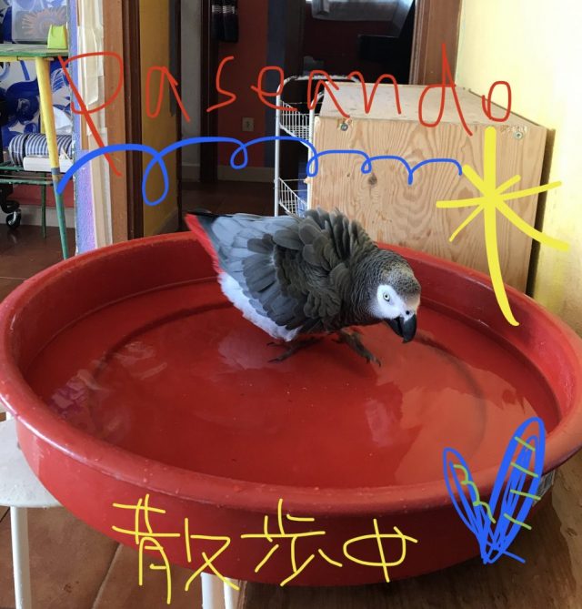 これから洗おうと思っていた鍋に(汗)。これ以上、オウムが脂っこくなっては困るので、すぐにオウム用プールを設置。