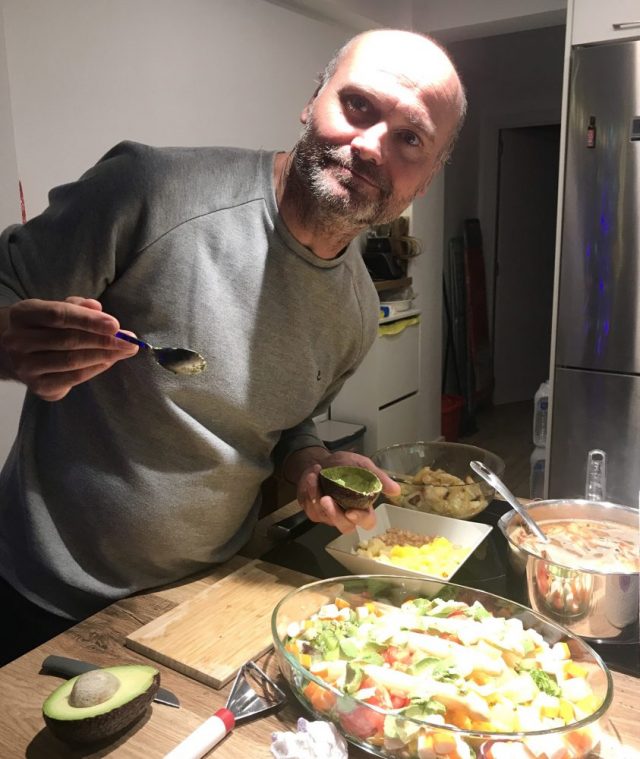 料理に集中するハビ吉の横で「何か飲ませて〜」とお願い。まずはキッチンで乾杯。よっし。これでアシスタント業にも気合いが入る。