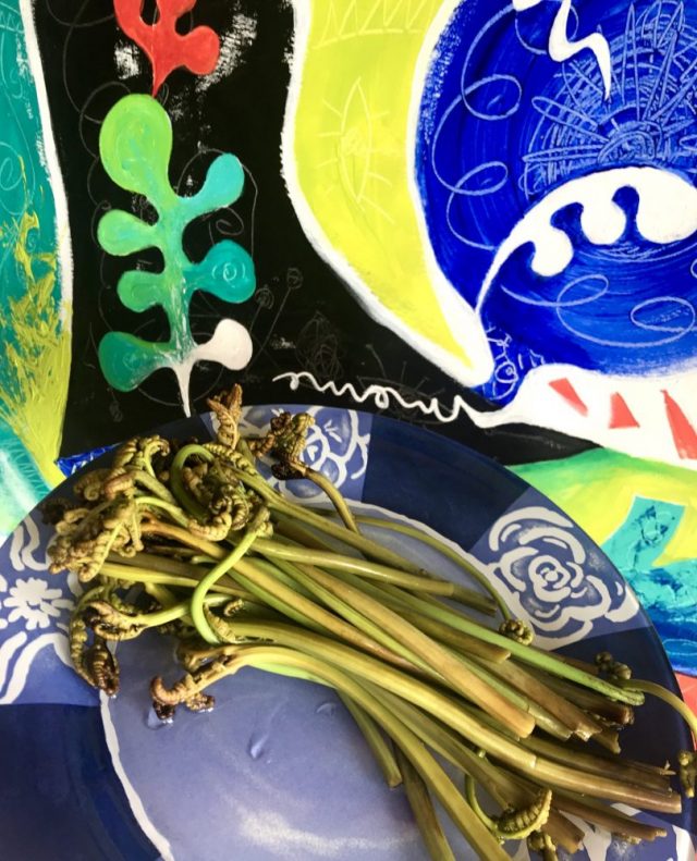 「いただいたワラビと納豆、醤油にオリーブオイルで」