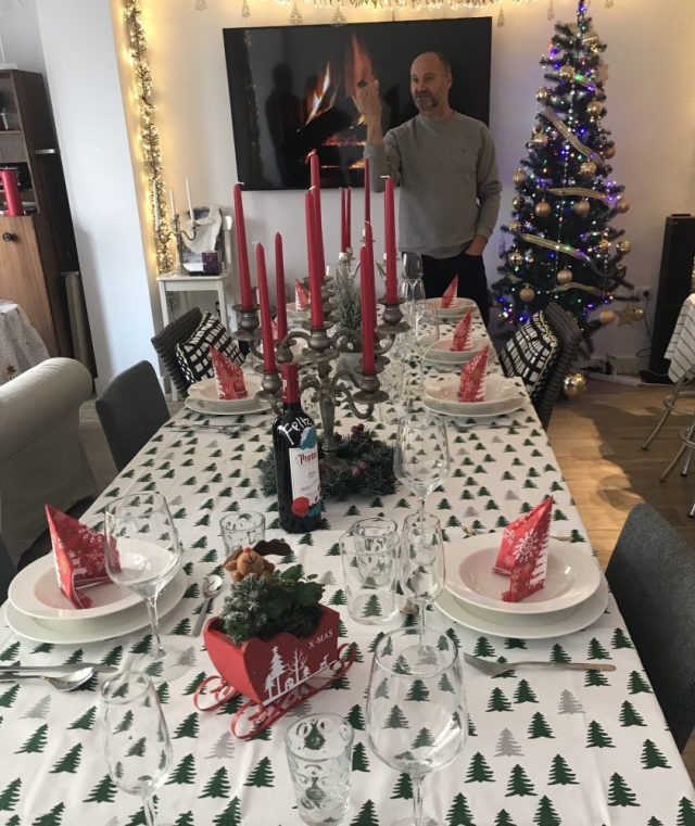 すごっ。これで7人前。これからオーブンで2時間近くかかるらしい。私はテーブルセッティングを開始。はたして。(明日に続く)
