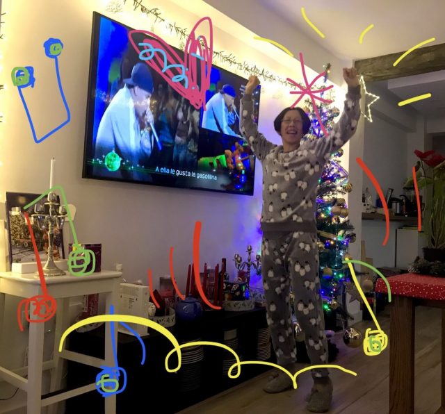 30曲、50曲・・・ノンストップでスペインポップ、サルサ、メレンゲ、フラメンコ・・・が流れてくる。豪華や〜。曲名や歌手名を当て、踊り、大笑いし、曲にまつわる思い出話をし、もうへとへと。