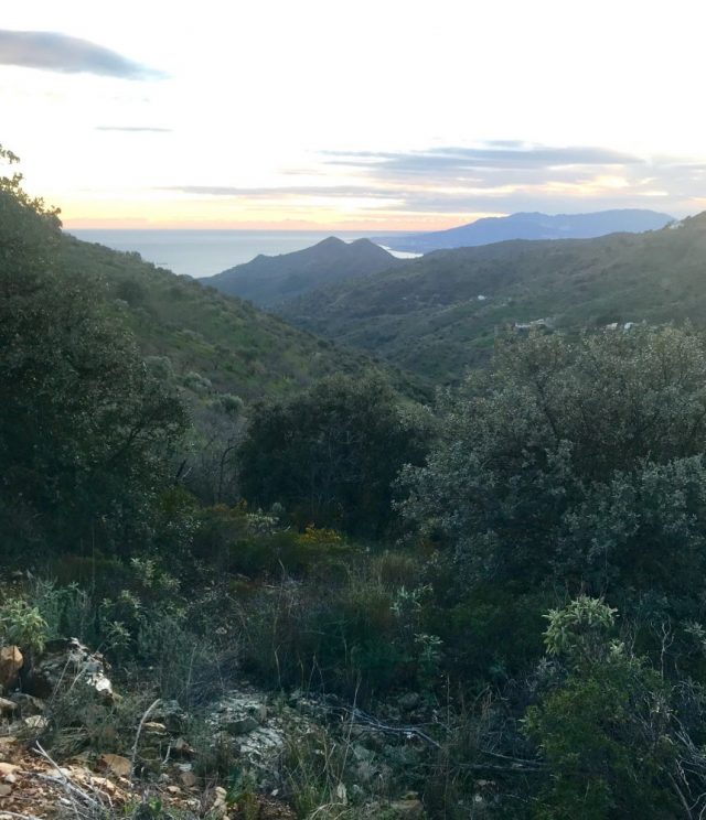 そうであろう。ごごーっという風の音が、耳の底で響く渡る。お茶した後は、アサルキアの山々を眺めながらひたすら下り坂。マラガ市街では見ることのないコケまで生えている。