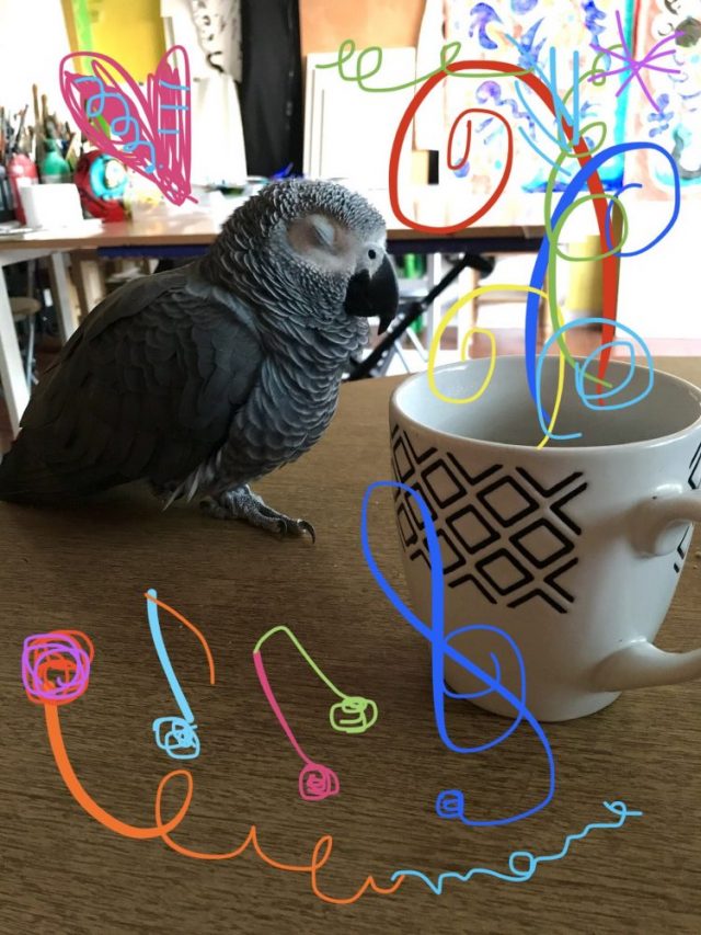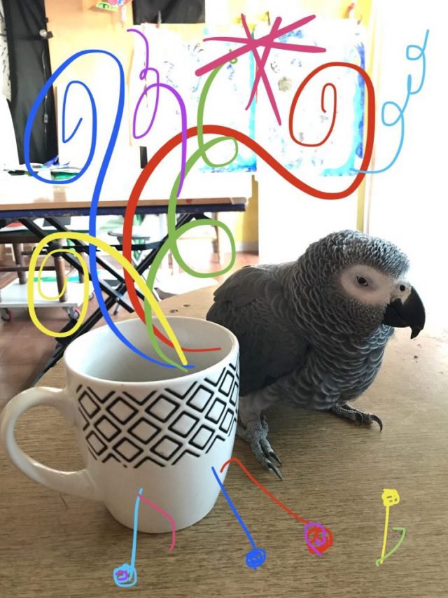 今日の「一日一作」は、物語アート。オウムとのコラボで(笑)。なんだか「ぶふふー」と笑わせてもらったから、あと一息がんばって片付けてしまおう。
