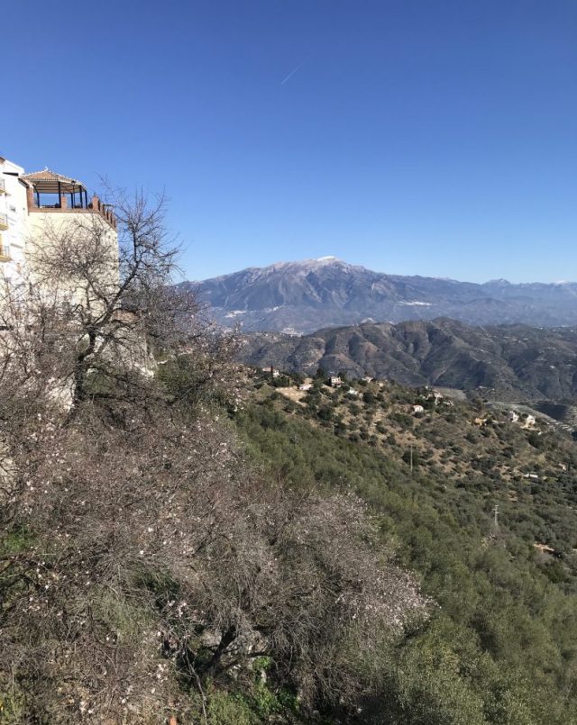 雲ひとつない青空。さんさんとふり注ぐ日差し。これぞマラガ!大雪のマドリッドとはまるで違う。丘の斜面にぽつぽつと、白い花をつけるのは・・・