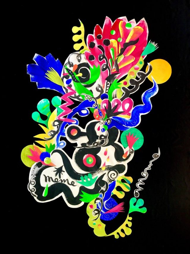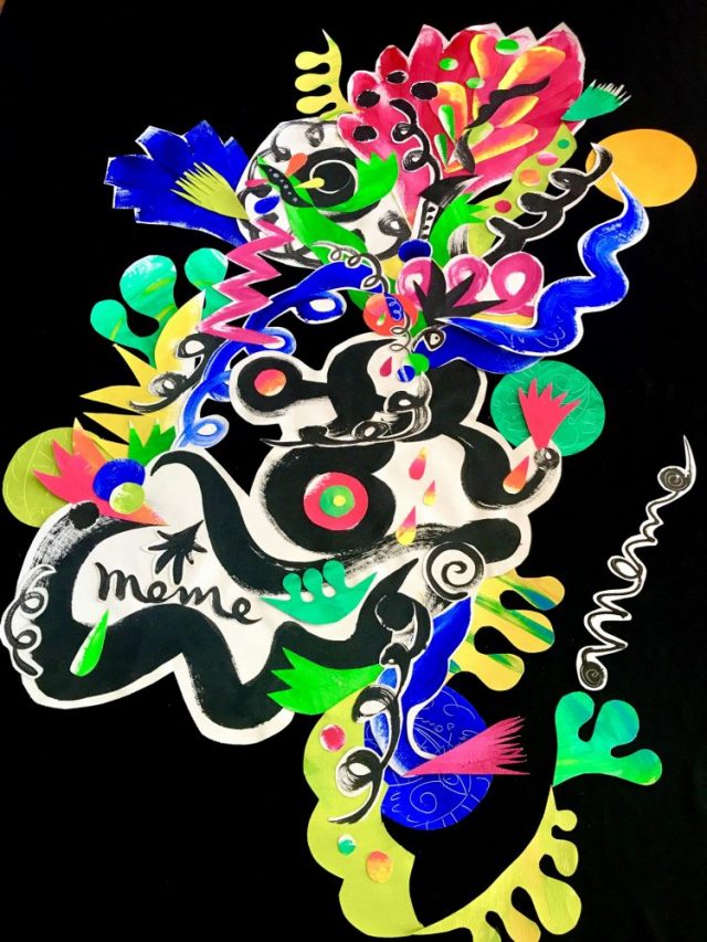 【一日一作プロジェクト】カリグラフィ&コラージュアート「夢眼遊芽(ゆめゆめ)」を作った。今週マラガは異常気象で初夏の陽気。今日は
