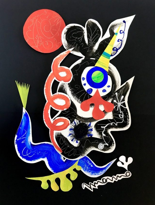 一つ眼の夢。厚紙のコラージュは楽しいな〜。このシリーズで「夢」「芽」「道」の3作を作りたい。3つ合わせて「夢芽道(ゆめみち)」。