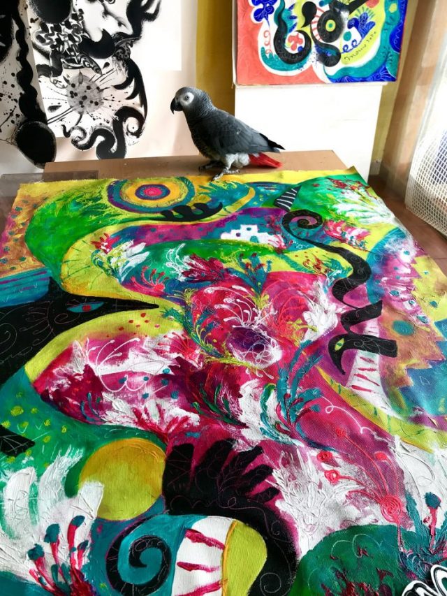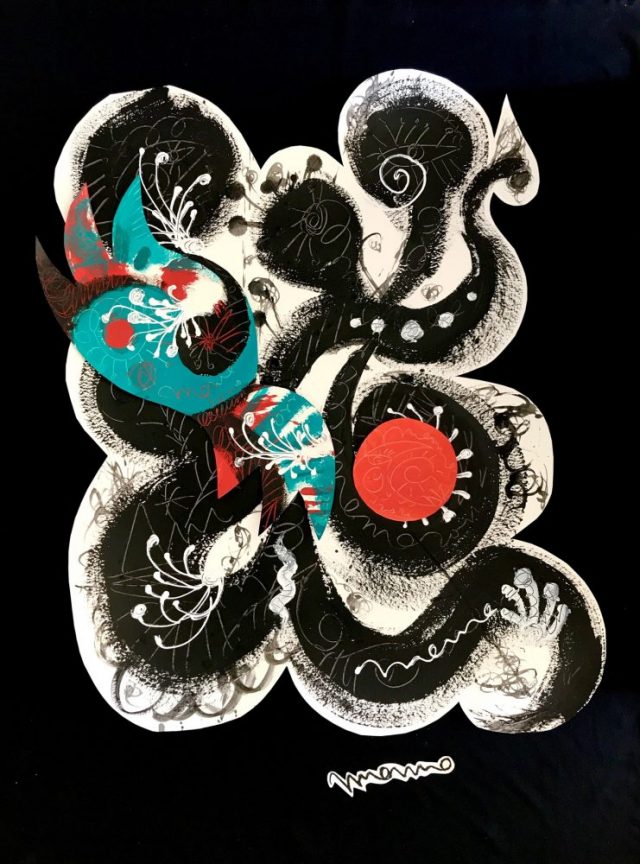 【一日一作プロジェクト】カリグラフィアート「ぐるぼこ道」を作った。その横で「アーモンドの丘」も進行中。これで8割完成(写真)。いよいよ屋外ダンス教室が再開!