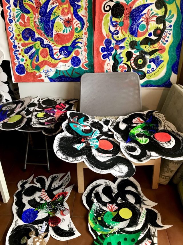 明日がタイムリミット。なんとしても仕上げるぞ〜。4日間で描こうという無謀な計画。ビビッドカラーでエネルギー全開だ〜。