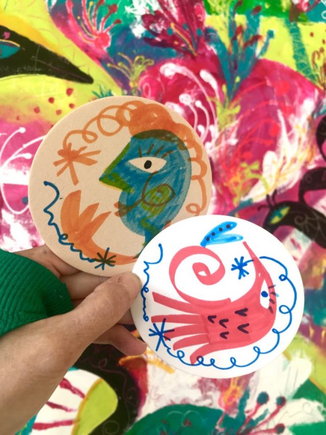 【一日一作プロジェクト】コースターにペイントして「ハグ星」を作った。20年来の友人インマと海岸沿いのチリンギート(魚介類レストラン)へ。