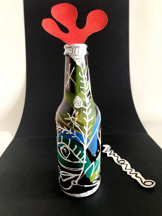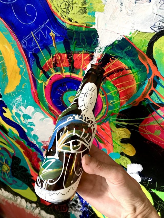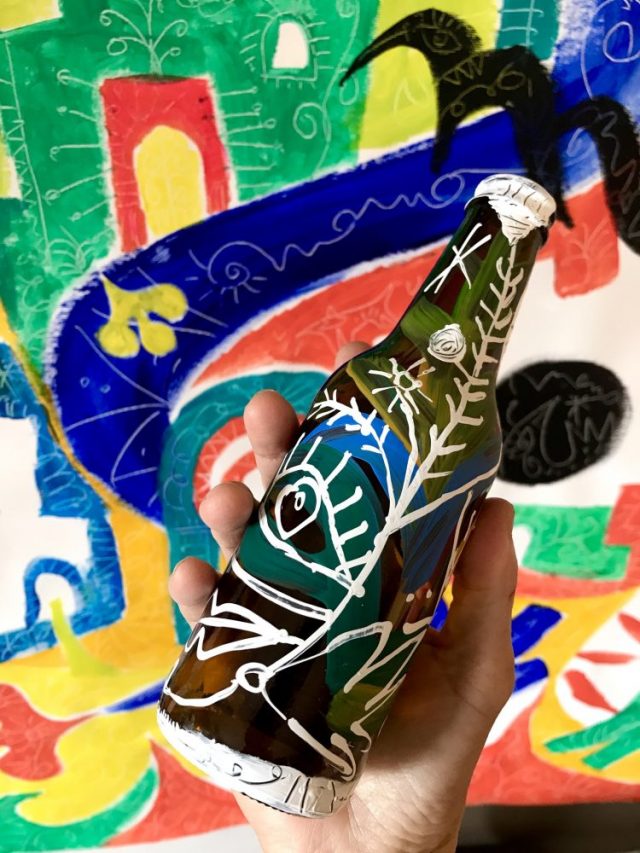 【一日一作プロジェクト】ボトルにペイントして「己花(おのればな)」を作った。私の作品があまりに色鮮やかなのに驚きと不安を感じた方々が、時々尋ねてくださる。