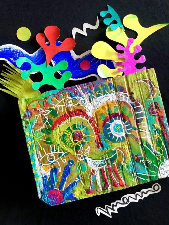 【一日一作プロジェクト】レンガにペイント&コラージュして「春庭(はるにわ)ぴかり」を作った。数日前から、うちのテラスに時々