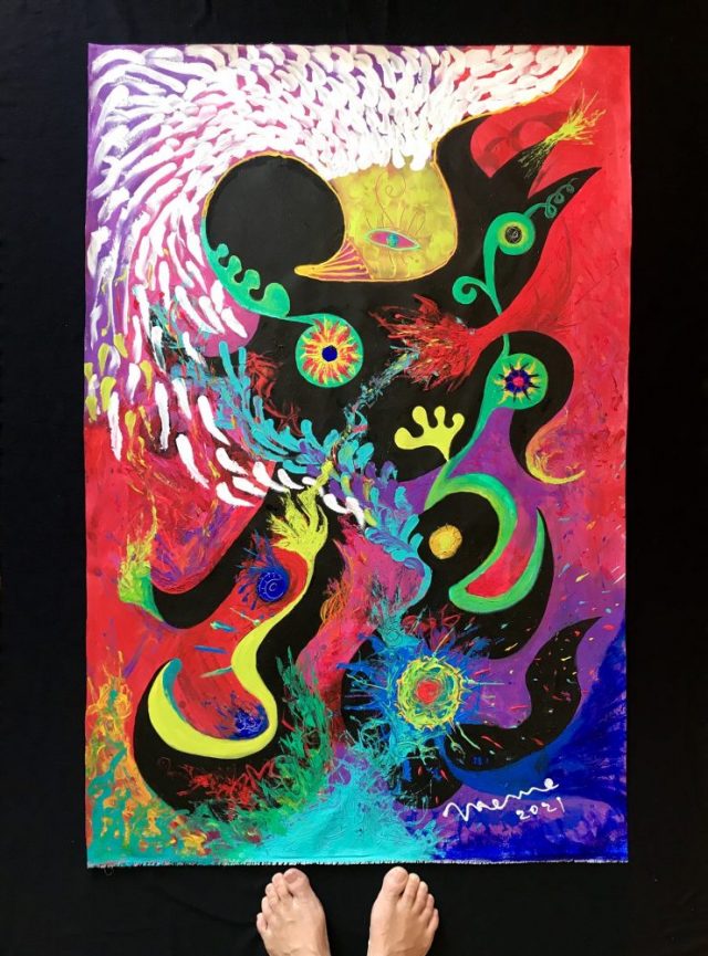 【一日一作プロジェクト】ミャンマーの人々へのエールアート「平和の舞・ミャンマーの白い鳥」を作った。4日間で描き上げると決意し、命を注いだ。私にはまだ