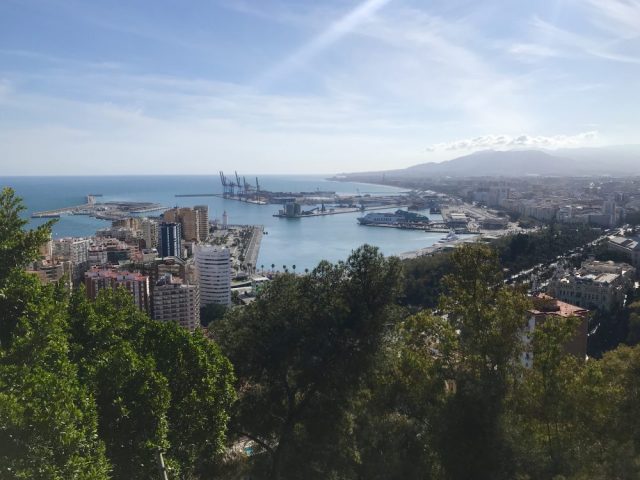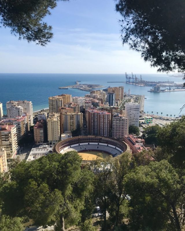 何度来ても、いい。丘の上に立つパラドール(宮殿、修道院などを改装したスペインの国営ホテル)からは、マラガ港、闘牛場、マラガ市街が一望のもと。