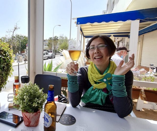ビール片手に呟いたら、しっかり撮られてた(2枚目)笑。いつも絶妙なタイミングでパチリとやる千恵さん。お店のお兄さん達の感じがよくて、おしゃべりしていたら