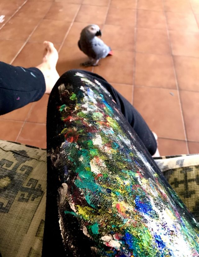 あぁ、ものすごい開放感。歩ける〜。踊れる〜(笑)。オウムが飛び回るたび、床やテーブルに置かれたパーツや素材が
