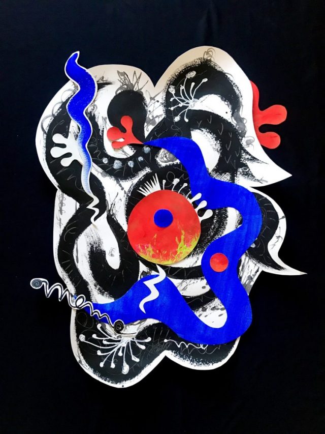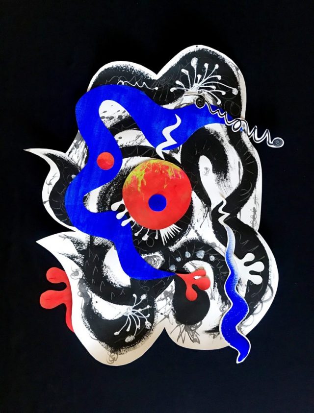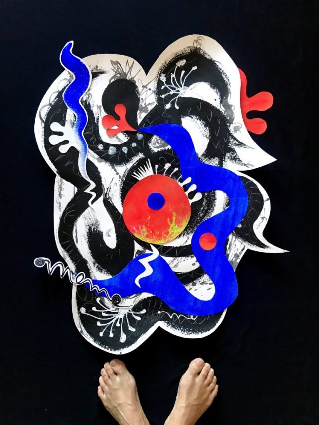 の2点を使って、カリグラフィアート「夢」の上で踊らせてみた。異なる波動を持つ2つの命が