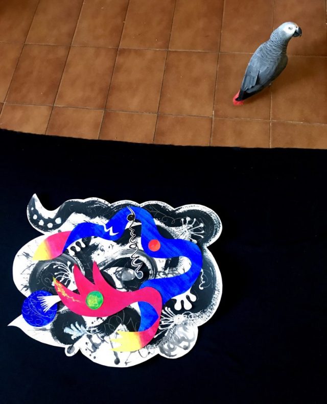 【一日一作プロジェクト】「七福獣」シリーズ「遊火水(あそびみず)」を作った。朝から用事で走り回り1万歩。プラス、ダンス教室。絵の仲間のクリスティーナが
