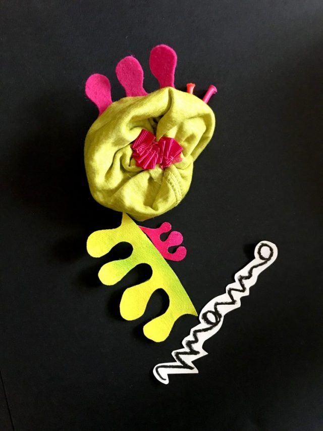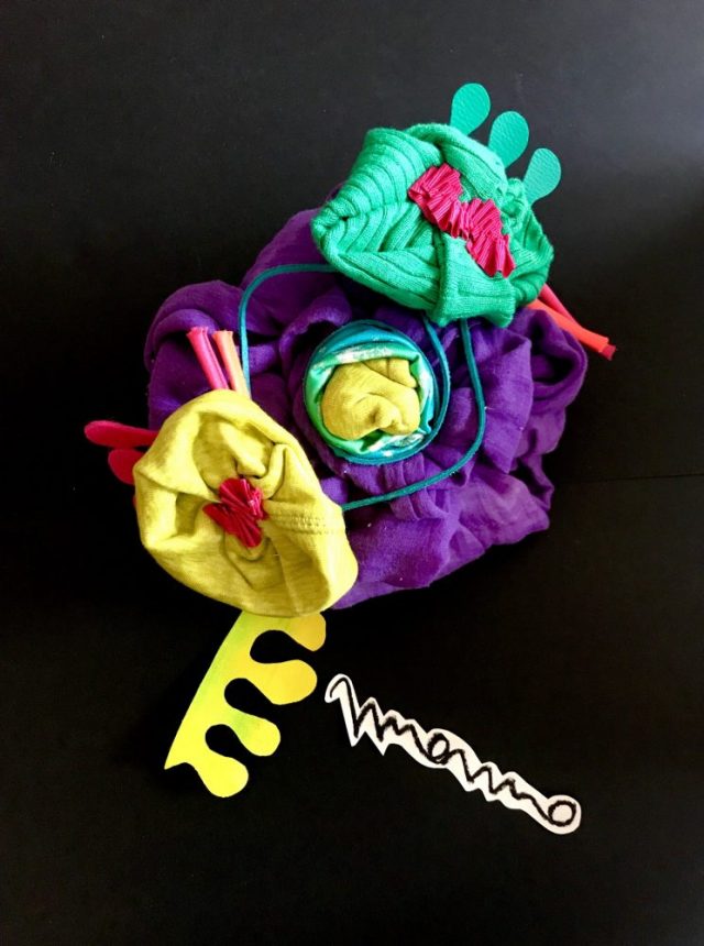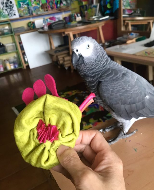 【一日一作プロジェクト】布&ひもで「ぴかり玉鳥(ぴかりたまどり)」を作った。実はこれらの「ブローチアート」。全て「私の服」で作っている。