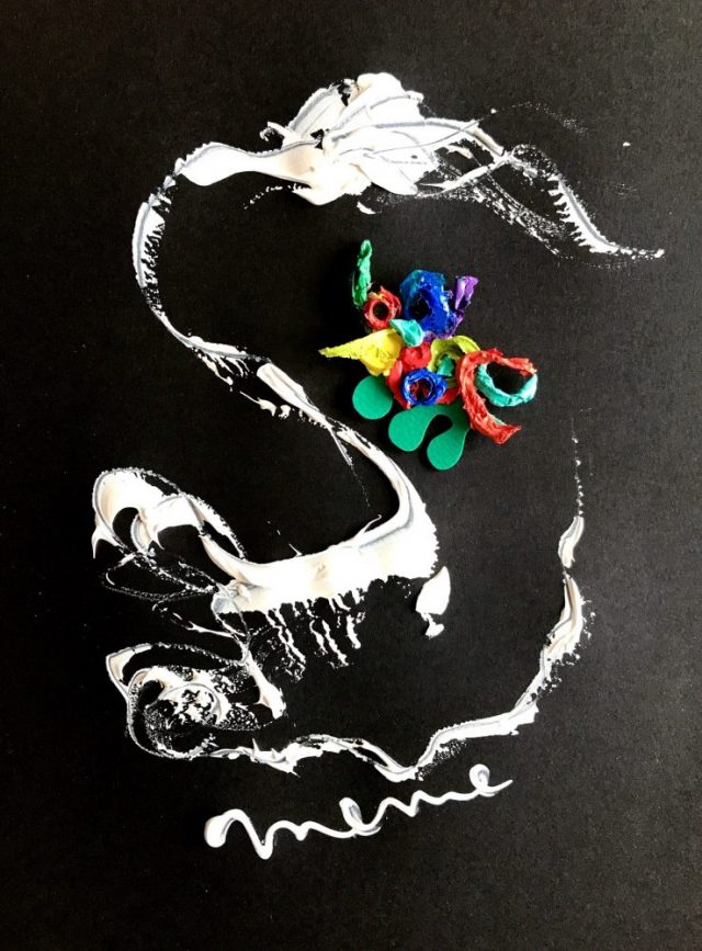 【一日一作プロジェクト】絵の具のカス・クズを集めて「地獣・道守(みちもり)」を作った。天を舞い、大地を走り、大海を泳ぐ「天地海の3聖獣」シリーズ。