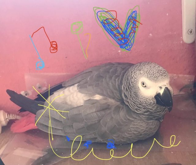 そうなると、もう絵の具のカス・クズが待ち遠しい(笑)完全に「素材」。さて。そんな中、オウムは今日もパソコンのスピーカー横を陣取り、音楽鑑賞。ふと見ると